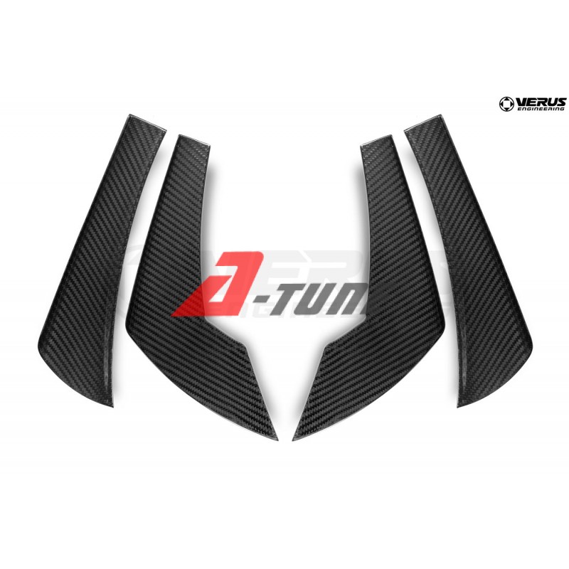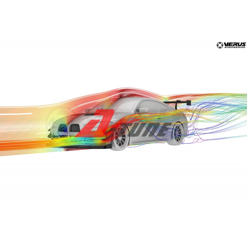 Комплект подвійних аеродинамічних дефлекторів Verus Engineering для BMW M3/M4 G80/G82 спеціально розроблений для збільшення притискної сили передньої частини автомобіля при мінімальному збільшенні аеродинамічного опору. Елементи працюють разом, допомагаючи виводити потік повітря з арки колеса та створюючи притискну силу на передній осі. Різні конструкції були протестовані за допомогою CFD, і цей комплект показав найкращі результати, навіть у порівнянні з канардами або дефлекторами в стилі GT4 M4.