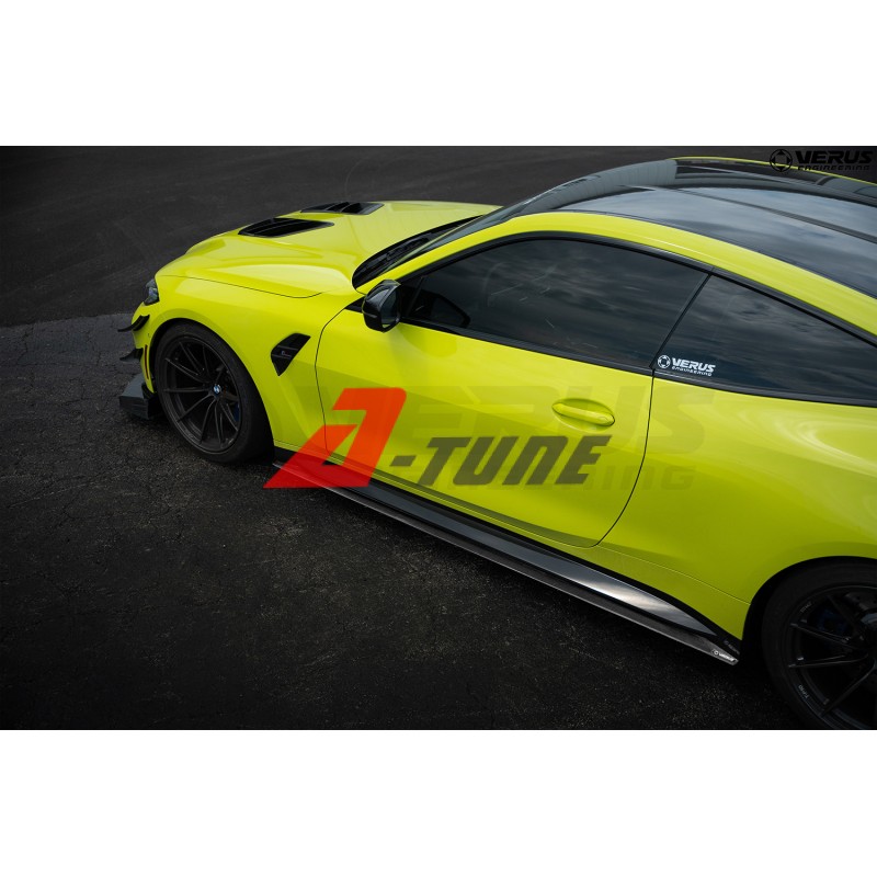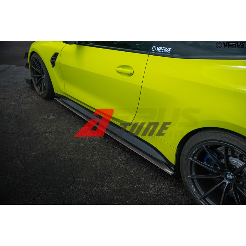 Комплект бокових спліттерів з вуглецевого політкання Verus Engineering завершує аеродинамічний вигляд вашого BMW M4 серії G. Ці елементи спеціально розроблені для гармонійної взаємодії зі штатним боковим спліттером і мають горизонтальну перемичку, яка зменшує кількість високого тиску повітря, що потрапляє на нижню частину автомобіля. Високий тиск створює підйомну силу, і зменшуючи його, ми зменшуємо підйом автомобіля, збільшуючи притискну силу. Це особливо помітно під час крену або поворотів автомобіля.