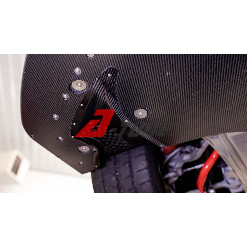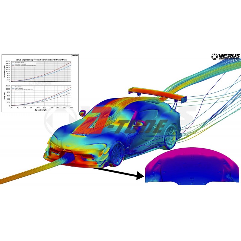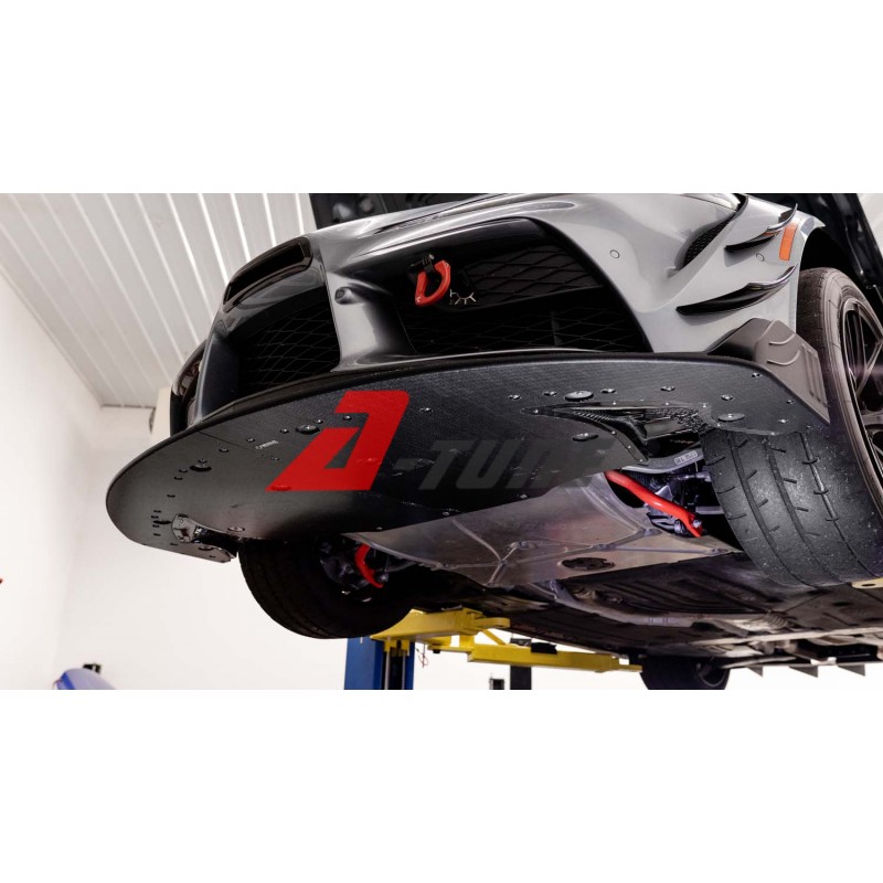 Передній спліттер з високою притискною силою для Toyota Supra Mk5 забезпечує збільшення передньої притискної сили, дозволяючи використовувати більші кути атаки на задньому антикрилі та зменшувати час кола. Тунельний спліттер кріпиться в кількох точках шасі для міцного та надійного монтажу і забезпечує на 27% більше передньої притискної сили.
