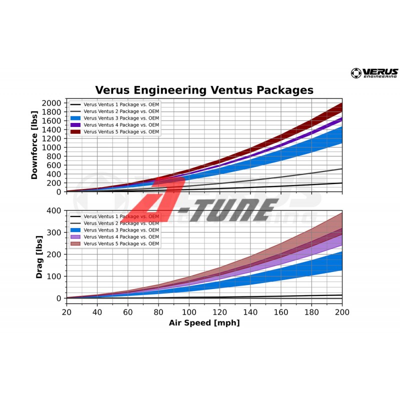 Пакет Ventus 2 забезпечує значне збільшення притискної сили з мінімальним збільшенням опору порівняно з пакетом Ventus 1. Також Ventus 2 покращує загальну аеродинамічну ефективність (Lift/Drag) у порівнянні з заводською конфігурацією та Ventus 1.